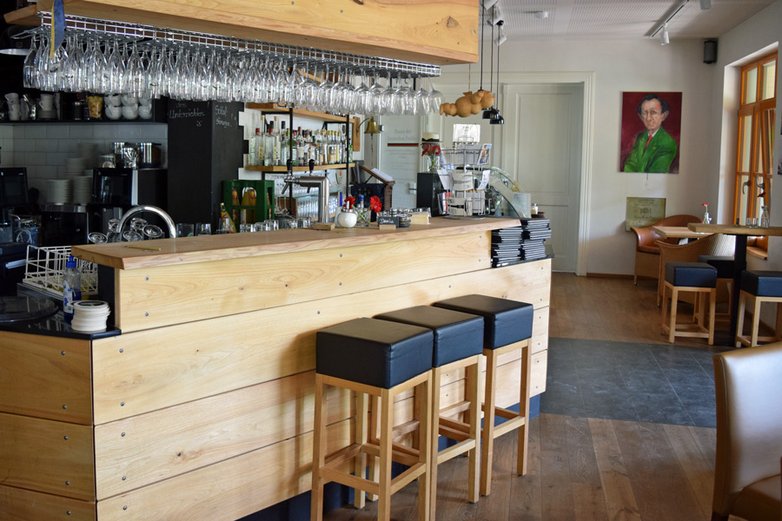 Bei einem Rundgang durch das Hotel wird deutlich, welch großen Stellenwert die persönliche, fast familiäre Note hier einnimmt. Die Zimmer sind liebevoll dekoriert – bis hin zum Regal mit alten Büchern und herrlich kreativen Namen wie „Luginsland“, „Götterfunken“ oder „Glückskind“. Mir fällt ein altes Stück Holz in einem der Flure auf. „Das stammt von einer Ulme, die hier auf dem Gelände gefällt werden musste“, erzählt mir Junicke. „Wir haben aus dem Holz ein Bett für eines der Zimmer angefertigt.“ Ein Zeugnis für die Wertschätzung, die hier der Natur und der Historie entgegengebracht wird, finde ich.