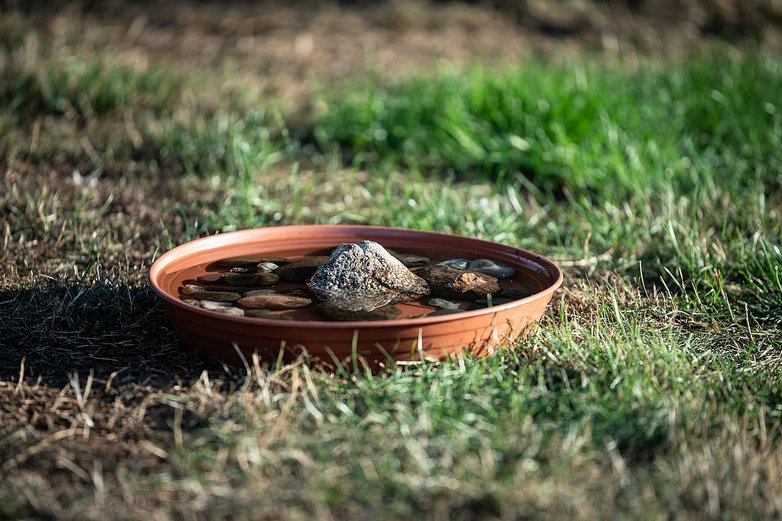 Und welche Ausrüstung wird benötigt, um Vögel beobachten zu können? „Da braucht es eigentlich nur ein gutes Fernglas. Wenn man mehr möchte, dann kommt ein Spektiv dazu und vielleicht eine Kamera mit langer Brennweite, zum Beispiel eine Superzoom-Kamera.“ Reimers selbst nutzt ein Fernglas mit 10facher Vergrößerung, diverse Kameras und ein Spektiv, durch das ich gleich mal einen Blick werfe. Wow, wie nah plötzlich die Vogeltränke in seinem Garten wirkt!