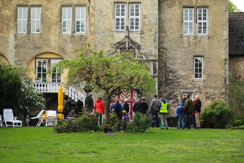 Mit Blick auf den Wetterbericht, der den ganzen Sonntag Regen voraussagte, fiel es mir zuerst schwer, mich morgens aus dem Bett zu erheben. Pünktlich zu meiner Ankunft auf dem Rittergut Lucklum kam jedoch plötzlich die Sonne hinter den grauen Wolken hervor und hob auf Anhieb meine Laune. Allen schlechten Wettervorhersagen zum Trotz blieb die Sonne auch dort den restlichen Tag am Himmel und geleitete uns trocken über die Dörfer. Startpunkt der ADFC-Tour und zugleich Highlight der Braunschweiger Landpartie war das „Frühlingsfest“ auf dem Rittergut. Diverse Marktstände der Region boten frisches Gemüse, Pflanzen, Getränke und Kuchen an. Durch Zufall lief ich direkt einem der Initiatoren, Andree Wilhelm vom Landkreis Wolfenbüttel in die Arme und nutze die Chance, mich mit ihm über das Ziel der Veranstaltung auszutauschen. „Unsere Region hat so viel zu bieten, dass es einfach an der Zeit war, diese Orte durch ein Fest wie die Landpartie miteinander zu verbinden. Wir hoffen, dass sich daraus langfristig eine Tradition entwickelt und wir auch die nächsten Jahre wieder gemeinsam mit den Bürgern der Landkreise sowie den Höfen und Gutshäusern ein buntes Programm auf die Beine stellen können.“