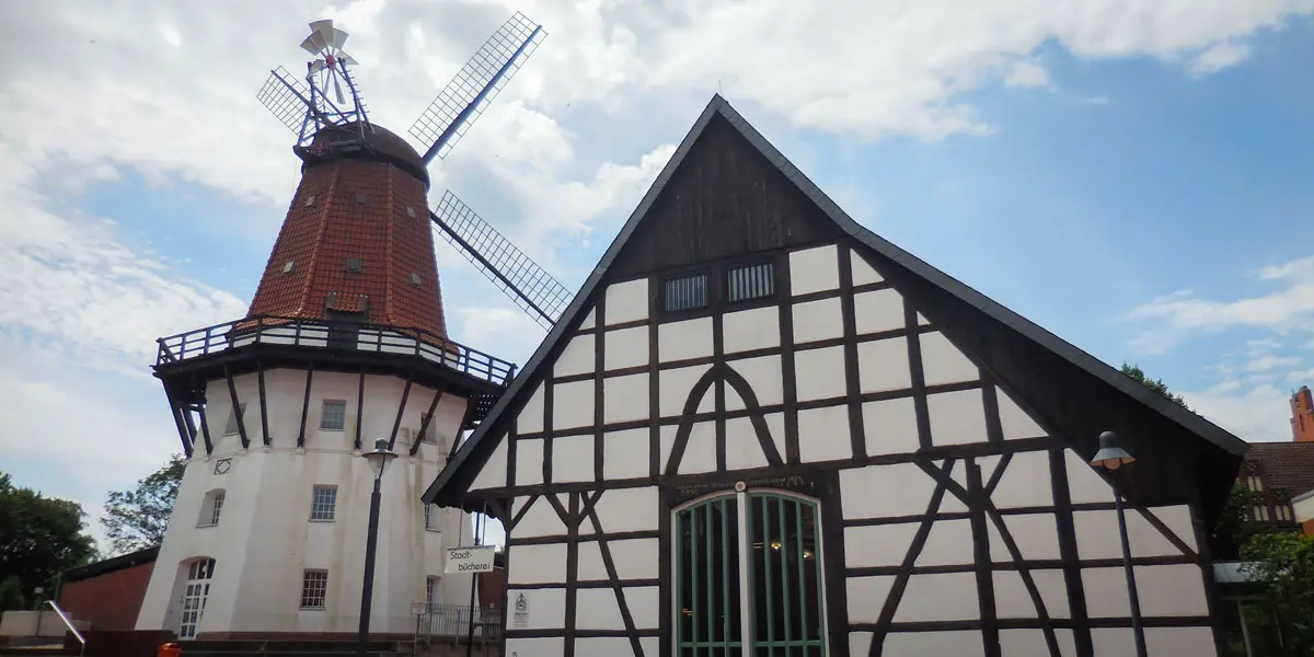Von hier sind es nur wenige Meter bis zum Damm: Siedlungsgeschichtlich ist diese Straße der älteste Teil der Stadt. Wer findet das Pelikan-Haus von 1611 in dieser schönen Straße? Rauf aufs Rad und weiter zum Winkel: An dieser Stelle wütete 1557 ein großer Brand. Kurz darauf wurde „Paane“ wieder aufgebaut und erweitert. Das über 330 Jahre alte Schmedenstedthaus, die heutige Bücherei, stammt ursprünglich aus der Ortschaft Schmedenstedt.