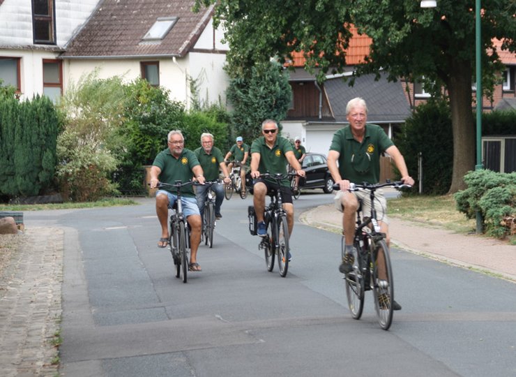 Es ist Mittwoch, 9:15 Uhr und es herrschen 28 Grad im Schatten. Ich bin mit der Radwanderabteilung „tramp tau“ der Turnerbrüderschaft Bortfeld e. V. verabredet, die alle zwei Wochen mittwochs zusammen eine längere Fahrradtour unternehmen. Länger bedeutet in ihrem Fall 30 bis 40 Kilometer. Das ist schon was. Ob wohl alle kommen werden, frage ich mich insgeheim. „Normalerweise“, erzählte mir Roland Weber, Abteilungsleiter der Radlergruppe, im Vorgespräch, „sind wir rund 25 ältere Herren, die sich treffen und meist haben wir ein besonderes Ziel.“ Aber heute? Bei den Temperaturen?
