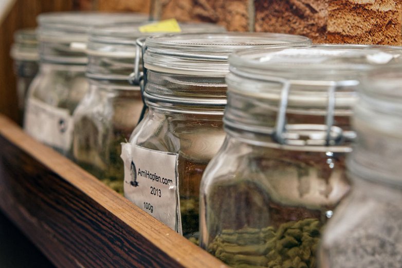 Vorbei geht’s an einem kleinen Lagerraum, der bis unter die Decke vollgestopft ist mit Malzfässern. Dann kommen wir in ein geräumiges Zimmer mit Sitzbänken, Tischen und einem Tresen. „Hier machen wir später unsere Verkostungen“, schmiedet Christian Pläne. „Aber bis dahin ist noch einiges zu tun und natürlich müssen wir zuerst in den Brauvorgang investieren. Dank des Crowdfundings können wir jetzt endlich loslegen, das wird auch dringend Zeit.“