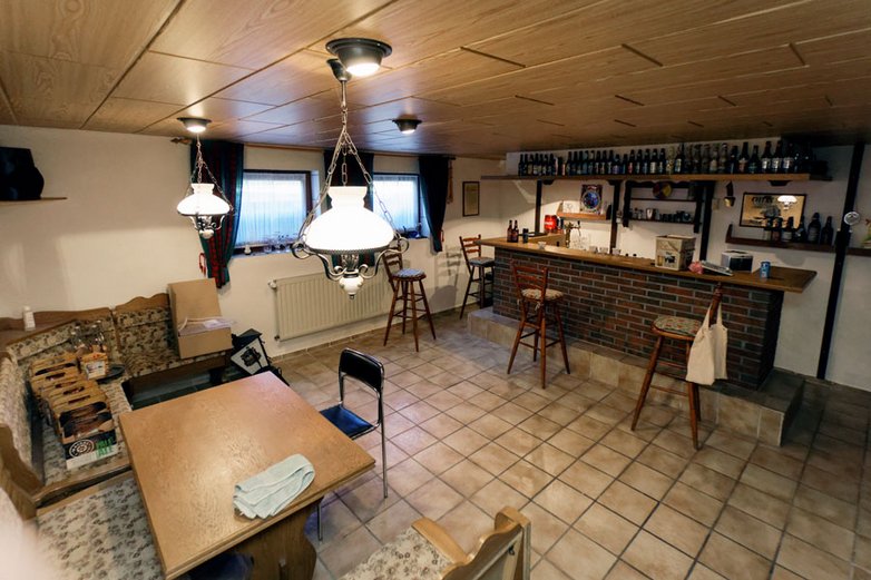 Christian, der Dritte im Bunde, winkt mir zu und schrubbt weiter an einem Stahlkessel. Als er damit fertig ist, führt er mich durch die angrenzenden Räume. Unverkennbar war dies jahrelang der Abstellkeller der Familie. Dies bezeugen viele herumstehende Gegenstände, die sich jetzt den Platz mit einer großen, neuen Kühltruhe teilen müssen.
