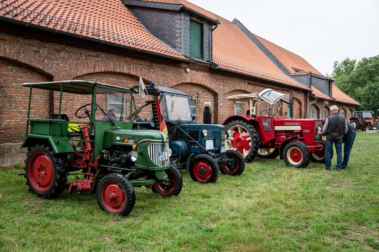 In einer Pflanzaktion werden nach der Begrüßung bienenfreundliche Bäume gepflanzt, die den Insekten zukünftig weiteren Lebensraum bieten sollen. Zudem gibt es zahlreiche Infostände, an denen man beispielsweise erfährt, wie man den eigenen Garten bienen- und insektenfreundlich gestalten kann. Herr Zwarg von der Arbeitsgruppe „Dorfgrün“ stellt auf einem Quadratmeter Fläche Pflanzen aus, die Bienen mögen. Mit seinem Oldtimer, einem Opel Kapitän, ist er gar nicht zu übersehen. Und das ist nicht der einzige Oldie, der hier zu bewundern ist. Verschiedene Trecker, vom hochmodernen Großgefährt bis zum schmucken Oldtimer, können von den interessierten Besuchern besichtigt werden – und natürlich darf auch eine Traktorrundfahrt bei einer solchen Landpartie nicht fehlen.