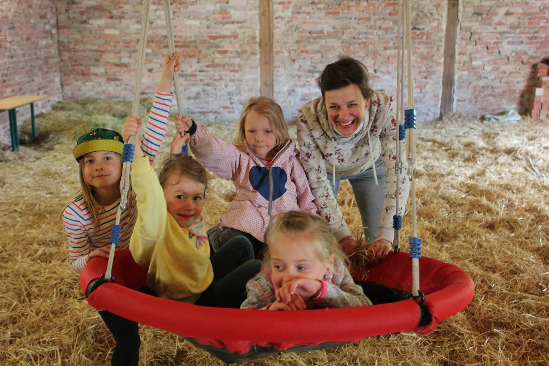 Neben der Bauer-Bues-Bande gibt es auf dem Erlebnisbauernhof auch die Landlümmels – ein Spielkreis an der frischen Luft für Kinder zwischen einem und drei Jahren gemeinsam mit einem Elternteil. Und auch für Kindergarten- und Schulausflüge bietet Swantje Bues das passende Programm an.