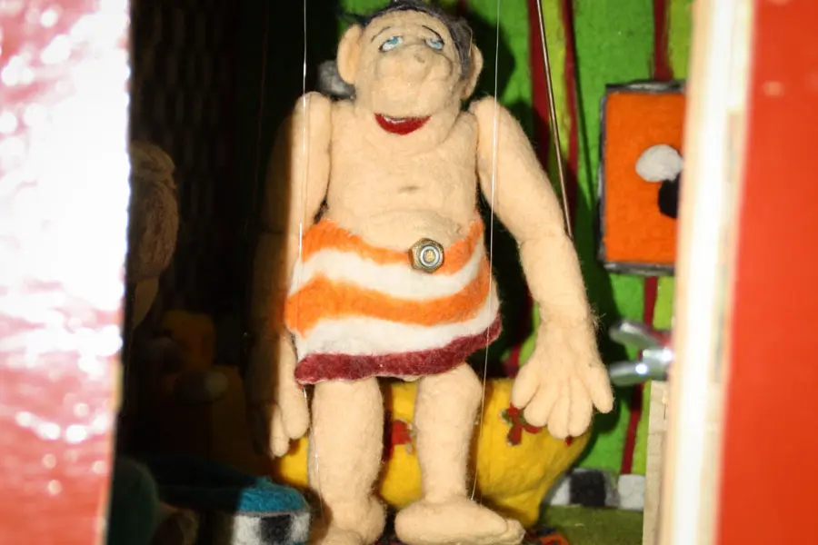Mich begeistert am meisten das ‚Theater für Einzelgänger‘. Bei einem der vier Varianten dient eine Art Puppenstube als Bühne für eine Figur, mit der Thomas Hirche für einen Zuschauer ein 3-Minuten-Stück aufführt. „Da ist dann jede Ausstellung ausverkauft“, grinst er spitzbübisch. „Leute bleiben stehen und schauen, was da passiert, werden neugierig und können sich dann auch für eine Vorstellung anstellen. Bezahlt wird, was man will.“ Ganz schön vielseitig, der Mann, denke ich.