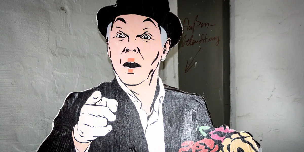In seinem früheren Leben war Thomas Hirche Sozialarbeiter, erfahre ich. Da bietet sich die Frage an: „Wie lange hast du denn schon diese Theaterambitionen?“ Die Antwort erstaunt mich nicht. „Och, als Autodidakt schauspielere ich seit meinem 16. Lebensjahr. Damals habe ich eine Theatergruppe mitbegründet, spielte in diversen Kabarettformationen, tourte unter anderem mit meinem eigenen semi-professionellen Figurentheater „Kunst & Honig“ durch Deutschland und habe Straßentheater gemacht. 2007 entschloss ich mich zu einer ‚Solokarriere‘. Ich klonte mich selbst, indem ich mir die lebensgroße Figur Mr. T. baute und gründete mein eigenes Tourneetheater ‚Me, myself and I‘.“