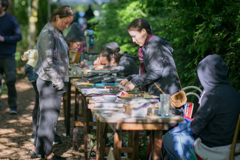Auf ekis e.V., den „Coolen Verein zur Erhaltung alternativer Kultur in und um Schöningen“, bin ich durch Zufall gestoßen, als ich mal wieder im Internet recherchierte, was so im Landkreis Helmstedt los ist. Mein Partner machte mir nicht besonders viel Hoffnung: Im ehemaligen Kohleabbaugebiet so nah an der innerdeutschen Grenze wäre einfach nicht viel los. Er bestätigte damit das Klischee vom idyllischen, aber einsamen Landleben. Aber von wegen: Da ist ein Verein, der Konzerte, Festivals und Events organisiert, wie ich sie auch aus Hannover und meiner Studienzeit in Hildesheim kenne. Und plötzlich stellt sich heraus, dass auch einer der Mitstreiter des Vereins in Hildesheim studiert hat. Er arbeitet mittlerweile professionell im Kulturbereich in Hamburg. Und trotzdem zieht es ihn und seine Freunde, die mittlerweile in Deutschland zerstreut leben, immer wieder in die Heimat, um dort den ländlichen Raum mit Ideen und Impulsen zu befruchten. Vor etwa acht Jahren hatten einige Jugendliche im Tagebau Schöningen eine Party gefeiert und diese „Es kracht im Schacht“ genannt. Der Name des Vereins ekis erinnert immer noch an die Anfänge, die wohl sehr bahnbrechend gewesen sein müssen. Daraufhin initiierte der ekis e.V. zwei Open-Air-Festivals in Heeseberg mit dem schönen Titel „Turm und Drang“, ein Treckerkino und in diesem Jahr das „Hinterwaldfestival“ im Elmhaus in Schöningen. Ekis e.V. experimentiert, entwickelt, probiert Neues aus und verbindet die vielen unterschiedlichen Kompetenzen und Interessen der Mitglieder miteinander. Über anstehende Projekte kommunizieren sie regelmäßig über Skype und andere Onlinetools. Einige der jungen Leute leben aber auch wieder in der ländlichen Heimat, halten hier die Stellung und bilden den harten Kern des Vereins.