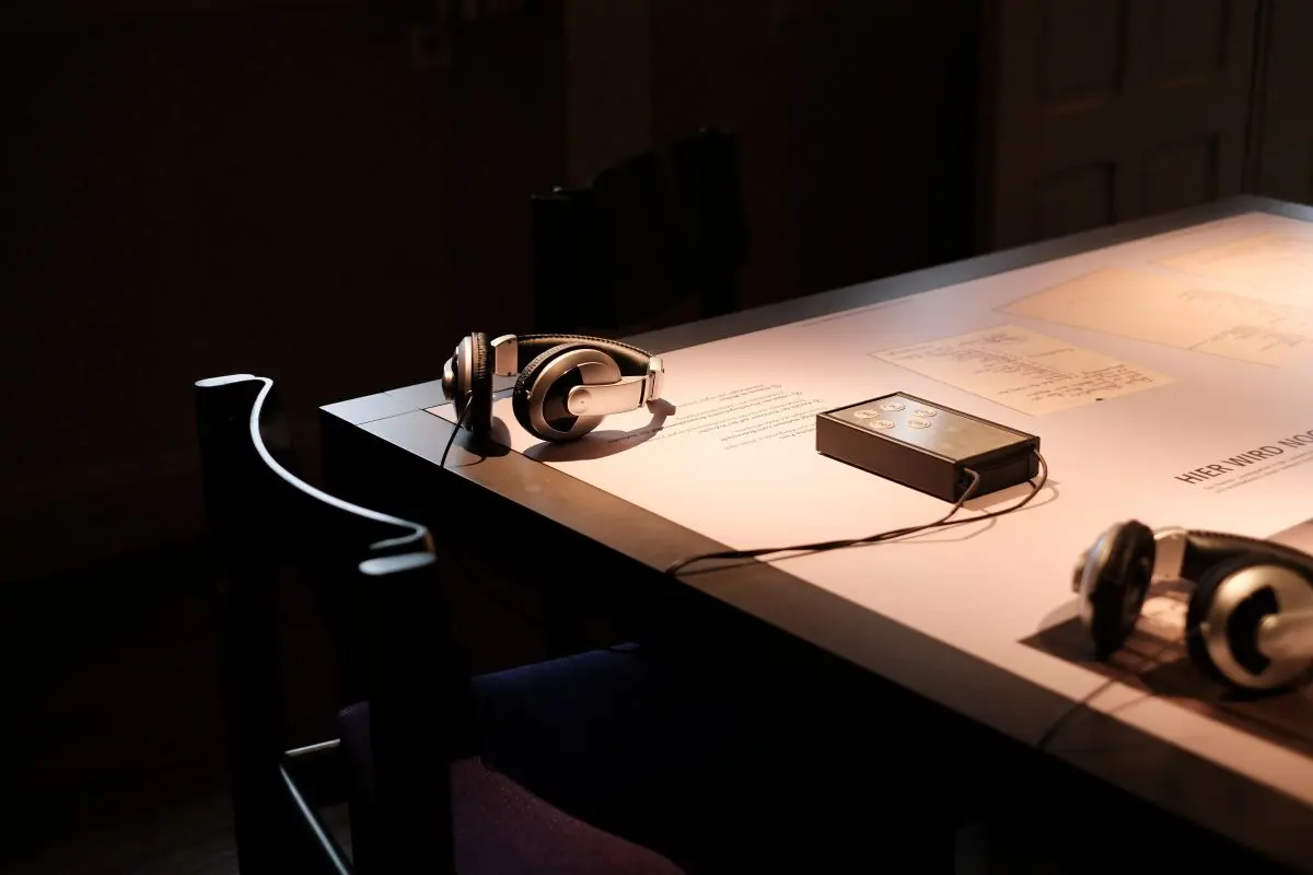 Herr Mayer hat mich vorgewarnt, wir durchschreiten nun das Zeitportal. Langsam öffnet sich eine Tür und Musik erklingt. Gespannt blicke ich in den Raum, der sich nun nach und nach vor mir erschließt. Die Musik wechselt vom feierlichen Kaiserwalzer zum lockeren Charleston der 1920er-Jahre. Ein flotter Marsch und der Ausschnitt aus einer Rede Adolf Hitlers folgen. Schnell wird mir klar: die Zeiten haben sich geändert. „Welten stürzen ein, Welten werden aufgebaut“, wie die Ehefrau des Forstmanns Rudolf Paes an ihn schreibt. Der Brief ist auf einem großen Tisch aufgedruckt, verschiedene Dokumente und mehrere Kopfhörer laden zur Beschäftigung mit den Zeitzeugnissen ein.