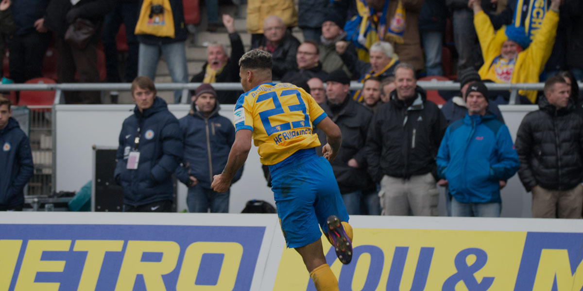 Plötzlich aber doch mal Druck im 96er-Strafraum und irgendwie spitzelt Domi so eine Art Flanke rüber zu ChicKen, der das Ding per Fallrückzieher aus acht Metern reinwemmst. Yee-ha! Was für eine Bude … Das Thema Fallrückzieher war ja jahrelang unterbelichtet in Braunschweig, nun passiert das öfter: Domi in der Bundesliga-Saison, Pfitze im August 2015 und nun Reichel. Klasse! Wir atmen durch. Darauf lässt sich aufbauen.