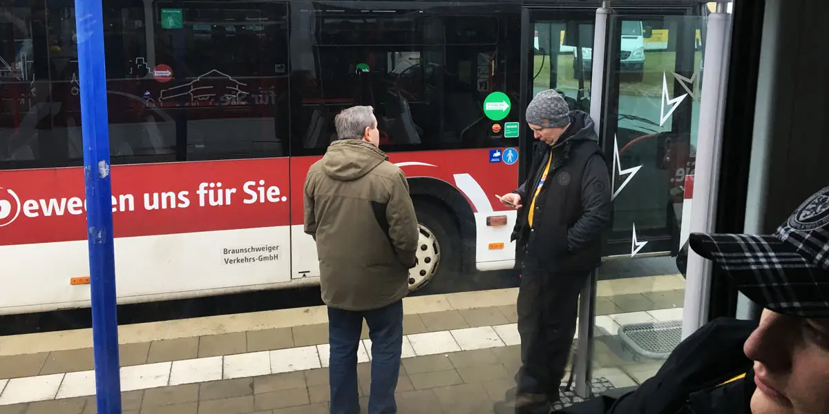 Christian und ich sind zusammen in Wolfenbüttel aufgewachsen. Er ist ein wenig älter. Seine Stadionanfänge reichen zurück in die Zeit, als – Achtung, nochmal Opa-Radio! – „die Fans dahinten in den Pappeln gehangen haben“. Er zeigt auf die Nordkurve. „Und Dächer gab es auch nur über der Haupttribüne“, erinnert er sich.