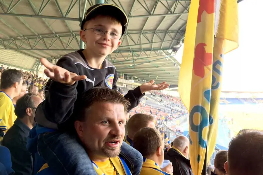 Als ich mich am Sonntag bei Sonnenschein und angenehmen Temperaturen auf’s Rad schwinge, gehen mir die gestrigen Gespräche noch durch den Kopf. Einen Tipp abgeben für das Spiel wollte keiner meiner Mitspieler so richtig, die Standardantwort war: „Ein Heimsieg muss her!“ Am FanRat-Stand bespreche ich mit Micha und Mex das „Vereins-Know-how“-Seminar, das wir für den 7. Oktober planen. Mitglieder von FanRat und Blau-gelber Hilfe wollen mit mir und einem Kollegen zu aktuellen Gemeinnützigkeits- und Non-Profit-Fragen arbeiten – das wird gut!