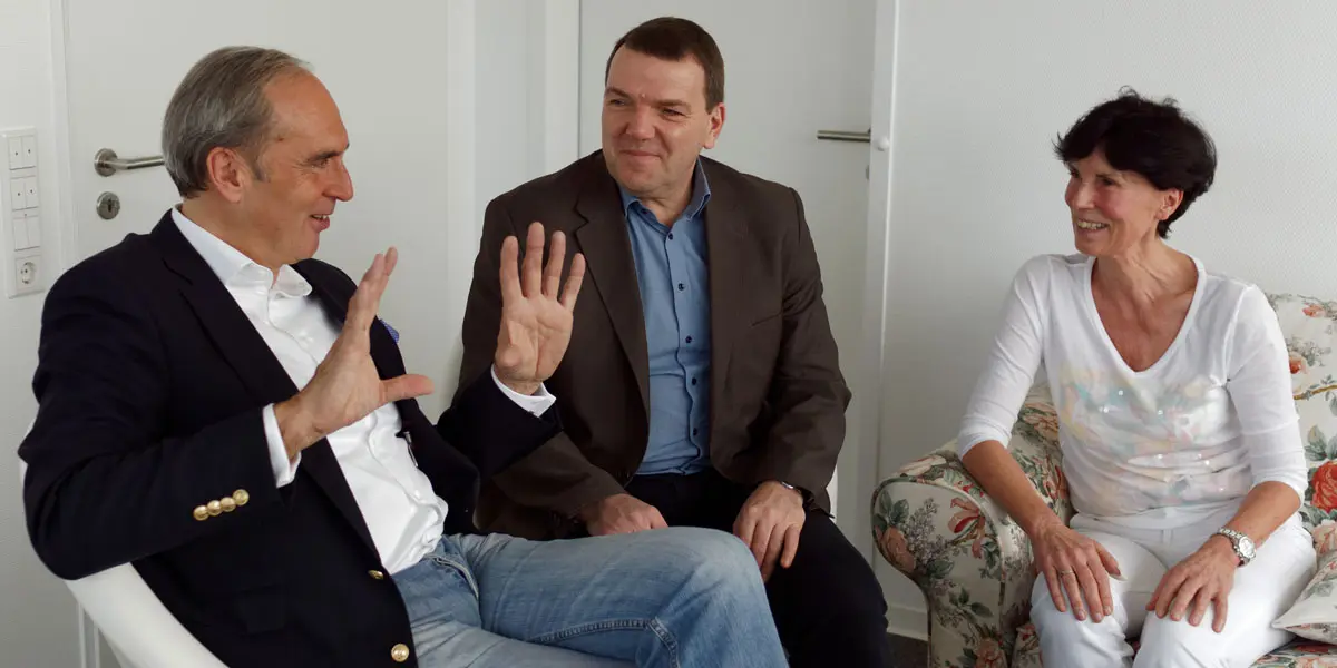 Auf der dritten Etage erwarten mich die beiden Initiatoren des Projekts, Dr. Jutta Wiesner und ihr Mann Dr. Detlef Kimmling, die mich herzlich begrüßen. Zu meiner Freude hat sich auch Axel Burghardt zu uns gesellt, der Geschäftsführer des Städtischen Klinikums, in dessen direkter Nachbarschaft das Med51! steht.