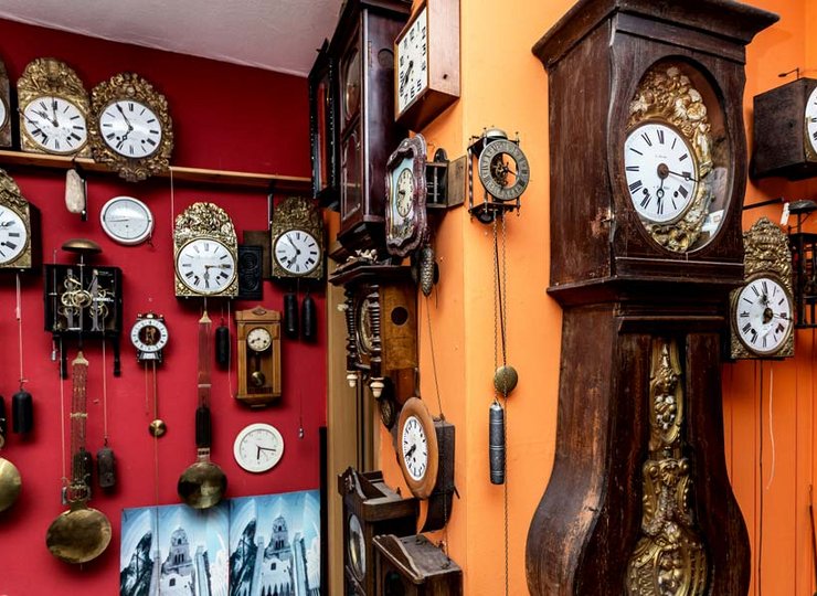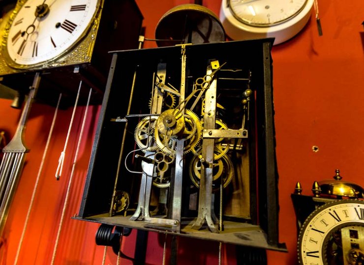 „Und wie werden all diese Uhren von Sommer- auf Winterzeit umgestellt?“, möchte ich wissen. „Das kommt ganz auf die Technik in der Uhr an“, erläutert er mir. Ältere mechanische Uhren wie die Comtoise können einfach um 23 Stunden vorgestellt werden, indem der Stundenzeiger entsprechend einfach rechts im Uhrzeigersinn gedreht wird.